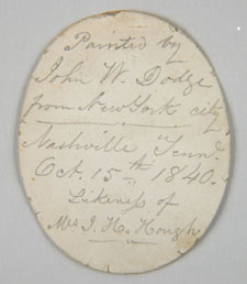 Condition: Excellent- Inscription: (signed On back:) Painted by/John W. Dodge from/New York City/Nashville Tenn./Oct. 15th 1840/Likeness of Mrs. J. H. Hough